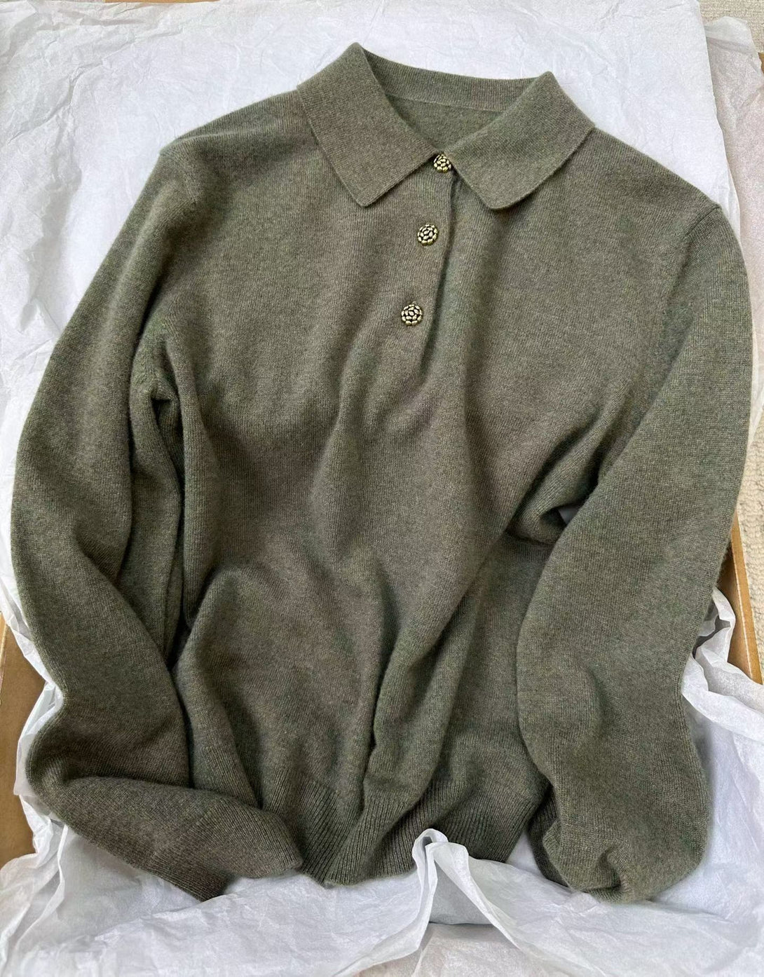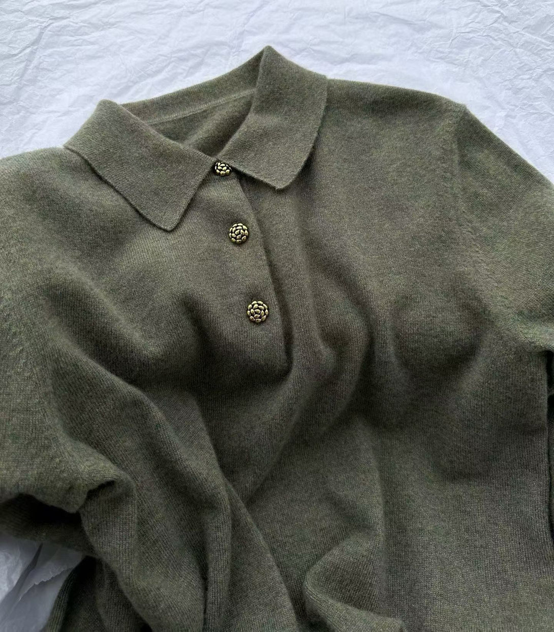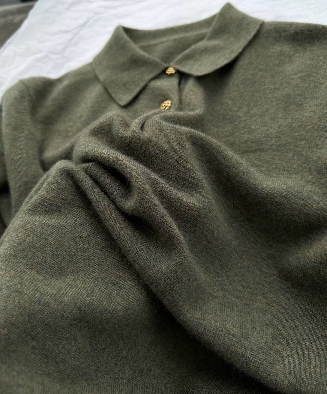 The garment's craftsmanship—the junction of the collar and chest patch is purely hand-crocheted, making the collar shape more rounded, beautiful, and refined. The small collar conceals many craftsmanship details; the density of the collar varies throughout, and there are delicate finishing details at the collar corners. The chest patch is woven into the body, making the entire garment visually and physically luxurious.